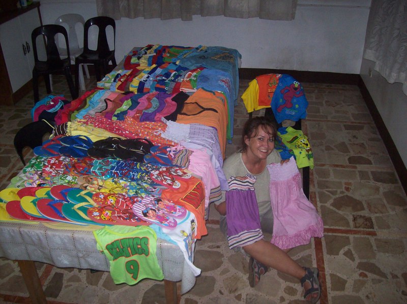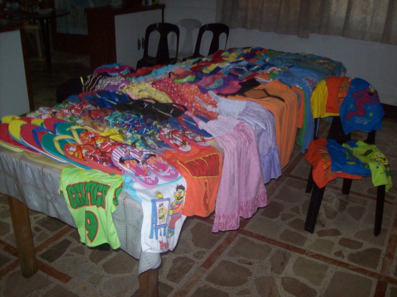 Mit wenigen Mitteln kann man in armen Ländern schon so unglaublich viel erreichen! Die Menge an T-Shirts und Flip Flops, die du auf den nachfolgenden Bildern siehst, wurden für nur ca. 80,- € vor Ort angeschafft! Für ca. 120,- € konnten 35 Lebensmittelpakete mit Reis und Zubehör gepackt werden, von denen sich 35 Familien eine Woche lang ernähren konnten! Es ist unfassbar, mit wie wenig Mitteln man so viel erreichen kann! Die Freude und Dankbarkeit in den Gesichtern der Straßenkinder und der Familien ist dabei das größte Geschenk, was wir selbst erhalten können.