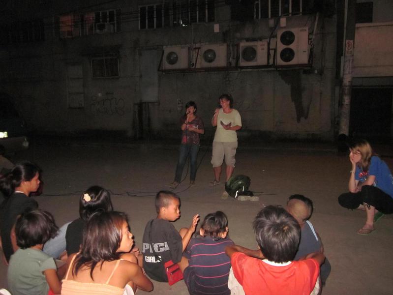 "Liebe geht durch den Magen!" Ernährung ist ein Grundbedürfnis, das bleibt das Wichtigste! Und Kleidung! Wer satt und bekleidet ist, hat auch ein offenes Ohr für das Evangelium! Jesus ist da, auch in der Not! Auf den Straßen von Manila von Jesus zu erzählen, in Englisch, mit Übersetzung in Tagalog, war ein ganz besonderes Erlebnis!